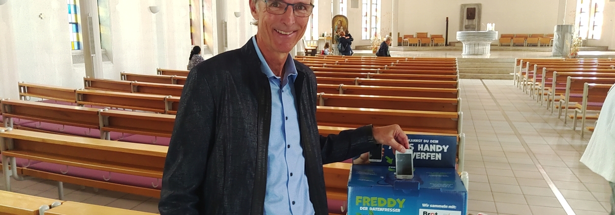 In der katholischen St. Laurentiuskirche in der Nähe des Krankenhauses ist jetzt eine Handysammelbox aufgestellt worden. Der Arbeitskreis Fairtradestadt Bietigheim-Bissingen hat damit ein drängendes Problem unserer Wegwerfgesellschaft aufgegriffen und in Bietigheim-Bissingen zwei Handysammelstellen aufgestellt, eine in der städtischen Bücherei und eine in der katholischen Laurentiuskirche. Die Sammelboxen werden von der ökumenischen Aktion „Handys als Kollekte“ bereitgestellt und professionell und nach den geltenden Datenschutzrichtlinien entsorgt. Der Erlös aus dem Verkauf der wertvollen Rohstoffe wie seltene Erden oder Koltan kommt Projekten der kirchlichen Hilfswerke von Missio und Brot für die Welt zugute. „Jeder von uns hat alte oder kaputte Handys zuhause liegen, mit deren Recycling wir doppelt Gutes tun können: nachhaltig wertvolle Rohstoffe wiederverwenden und gleichzeitig Entwicklungsprojekte fördern, die sich zum Beispiel dem Schicksal von Kindern in den Koltanminen des Kongo widmen“, so Johannes Schockenhoff, der Sprecher des Arbeitskreises.