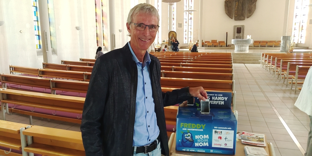 In der katholischen St. Laurentiuskirche in der Nähe des Krankenhauses ist jetzt eine Handysammelbox aufgestellt worden. Der Arbeitskreis Fairtradestadt Bietigheim-Bissingen hat damit ein drängendes Problem unserer Wegwerfgesellschaft aufgegriffen und in Bietigheim-Bissingen zwei Handysammelstellen aufgestellt, eine in der städtischen Bücherei und eine in der katholischen Laurentiuskirche. Die Sammelboxen werden von der ökumenischen Aktion „Handys als Kollekte“ bereitgestellt und professionell und nach den geltenden Datenschutzrichtlinien entsorgt. Der Erlös aus dem Verkauf der wertvollen Rohstoffe wie seltene Erden oder Koltan kommt Projekten der kirchlichen Hilfswerke von Missio und Brot für die Welt zugute. „Jeder von uns hat alte oder kaputte Handys zuhause liegen, mit deren Recycling wir doppelt Gutes tun können: nachhaltig wertvolle Rohstoffe wiederverwenden und gleichzeitig Entwicklungsprojekte fördern, die sich zum Beispiel dem Schicksal von Kindern in den Koltanminen des Kongo widmen“, so Johannes Schockenhoff, der Sprecher des Arbeitskreises.
